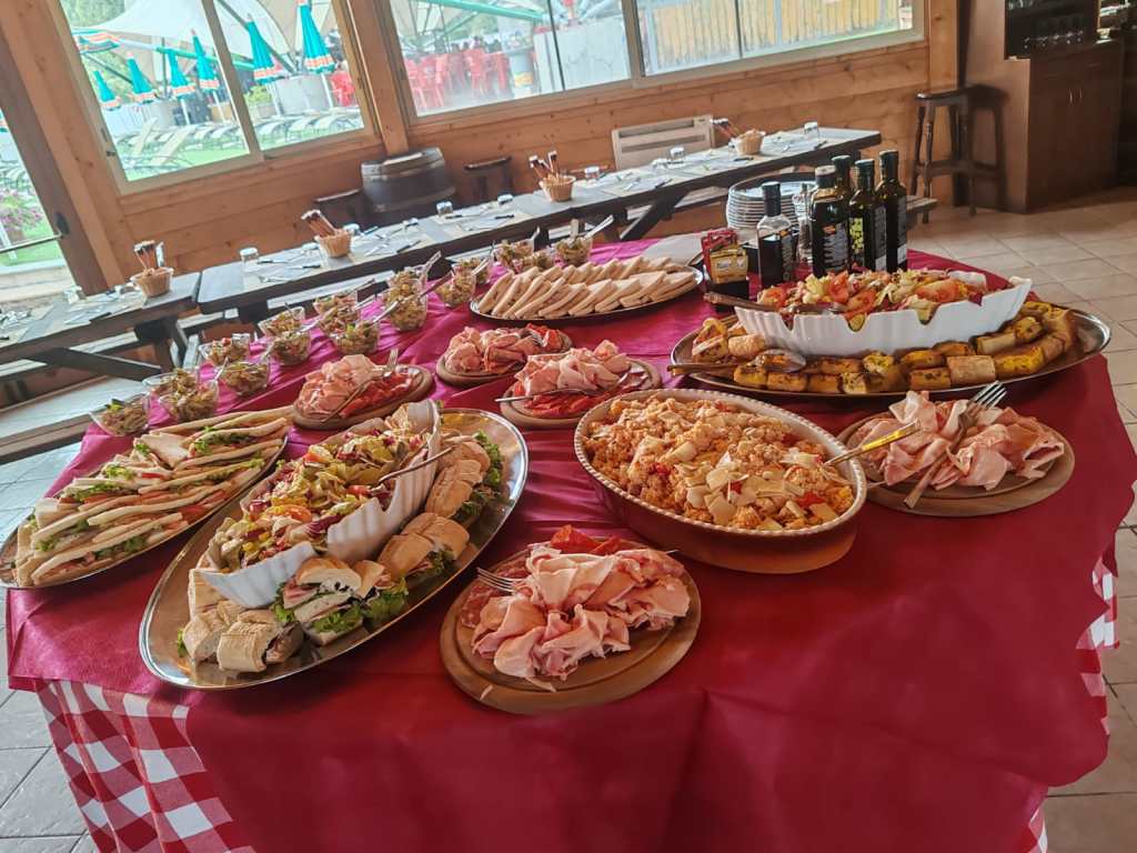 buffet: pizzette, focaccia ripiena, quiche verdure o pancetta, frittata , tramezzini, caprese , pasta fredda e panzanella