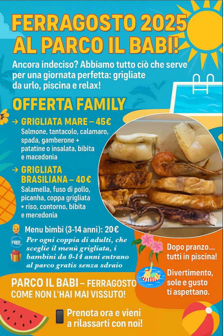 Inoltre, ci sarà la possibilità di organizzare una serata giro pizza presso il ristorante “Mare a Quadretti” / “Babi Sautun Music Risto Pub” (genitori compresi!)